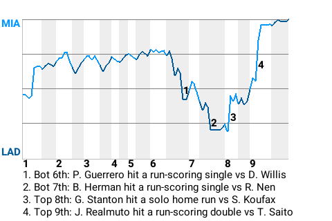 b - D. Lee substituted for M. Ozuna in the 9th