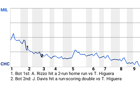 The Cubs got a big at-bat from first baseman Anthony Rizzo. For the game, Rizzo was 1-4 with a home run. He drove in 2 runs and scored once. In the bottom of the first, with a runner on 2nd, he stroked a 2-run home run. His 11th home run of the season gave Chicago a 2-0 lead.