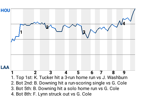 Houston used a clutch at-bat from Kyle Tucker to capture the win. The right fielder hammered a 3-run home run in the top of the first inning to put the Astros ahead, 3-0. It was his lone hit in 4 at-bats, but it was a humdinger.