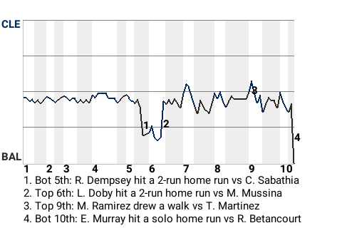 The Cleveland Indians went down to defeat to Mike Mussina and his Baltimore teammates. The final score was 3-2, Orioles, in 10 innings. The 4th-place Orioles bumped their record to 23-24.