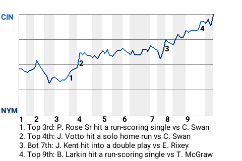 The game turned with no one out in the top of the fourth. That's when Votto hit a solo home run off Craig Swan. It propelled the Reds into the lead, 2-1.