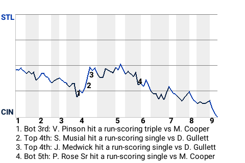 Starting pitcher Don Gullett fulfilled his part of the bargain, helping the Cincinnati Reds stymie the St. Louis Cardinals, 3-2. The winner was Gullett. He threw 7.2 innings allowing 2 runs. The loser was Mort Cooper. Rob Dibble finished to wrap up his 7th save.