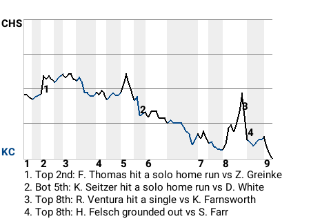 Kansas City picked up a win at Kauffman Stadium, bumping off the Chicago White Sox, 4-3. Pitcher Zack Greinke was a major reason the Royals emerged victorious. Greinke picked up the win for Kansas City, going 7 innings. He gave up 2 runs on 4 hits. He now sports a record of 1-0. Jeff Montgomery earned the save for Kansas City, his 2nd.