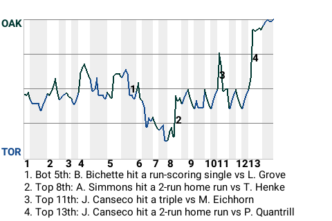 Oakland center fielder Al Simmons had a 3-RBI performance, which helped his team down the Toronto Blue Jays, 7-4. Oakland pitcher Andrew Bailey earned the win, hiking his record to 3-1. Paul Quantrill suffered the loss. Ryan Cook sewed up the save, his 1st.