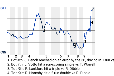 Who knows how it might've ended, had it not been for Rogers Hornsby? The St. Louis second baseman had a 2-run double in the top of the ninth inning to put the Cardinals on top, 7-5. For the game, Hornsby had 1 double and 1 single in 5 at-bats.