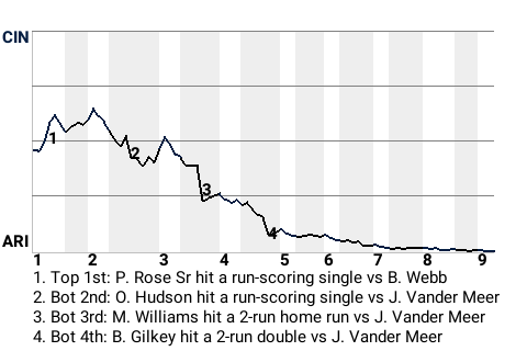 2 (16, 4th Inning off J. Vander Meer, 2 on, 1 out; 6th Inning off J. Maloney, 0 on, 1 out)