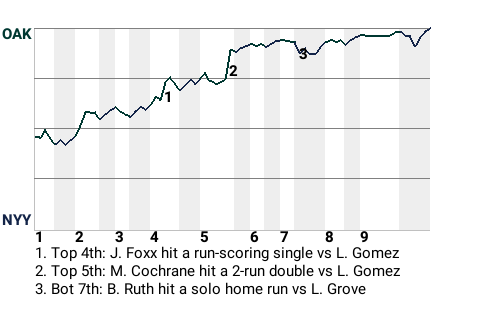 Oakland used a well-timed hit by Mickey Cochrane to capture the win. The catcher socked a 2-run double in the top of the fifth inning to put the Athletics ahead, 4-0. Though it was his only hit in 3 at-bats, it was important.
