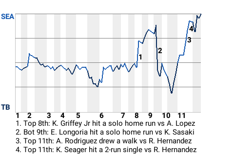 2 (7, 9th Inning off K. Sasaki, 0 on, 1 out; 11th Inning off N. Charlton, 0 on, 2 outs)