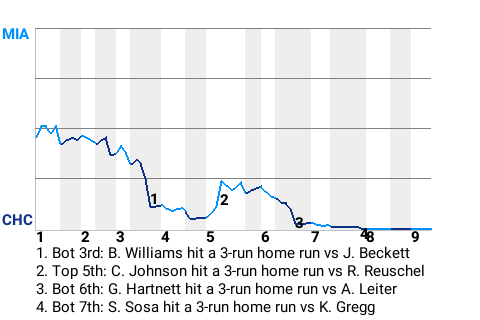 2 (3, 4th Inning off J. Beckett, 0 on, 0 outs; 6th Inning off A. Leiter, 2 on, 0 outs)