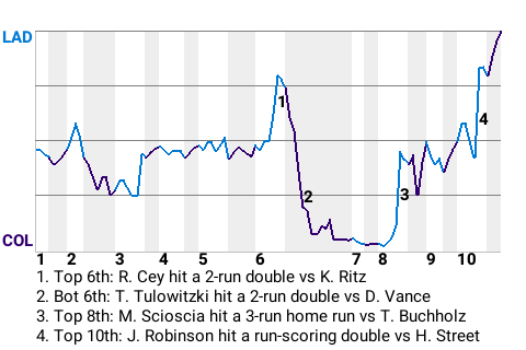 (10, 6th Inning off D. Vance, 2 on, 0 outs)
