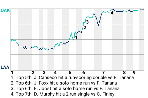 Who knows how it might've ended, had it not been for Jose Canseco? The Oakland designated hitter had a run-scoring double in the top of the fifth inning to put the Athletics on top, 2-1. For the game, Canseco had 1 double and 1 single in 4 at-bats.