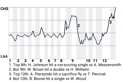 A J Pierzynski had a direct impact on the outcome. Pierzynski contributed a run-scoring sacrifice fly in the top of the 12th inning to put Chicago up, 2-1.