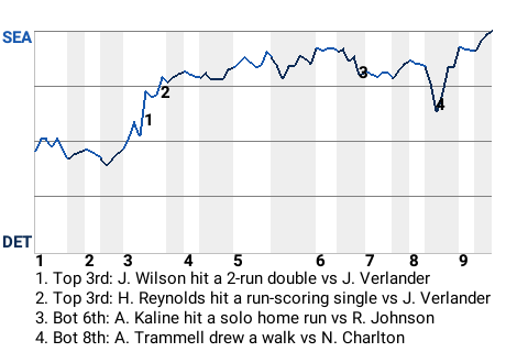 Who knows how it might've ended, had it not been for Jud Wilson? The Seattle designated hitter had a 2-run double in the top of the third inning to put the Mariners on top, 2-0. For the game, Wilson had 1 double and 1 single in 4 at-bats.