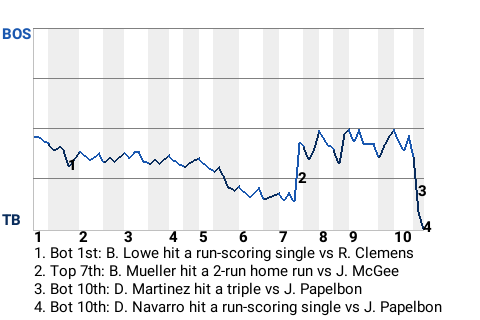 The Rays got a clutch hit from catcher Dioner Navarro. In the bottom of the tenth, he delivered a run-scoring single to win the game for the Rays.