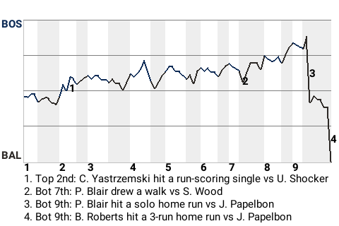 In the bottom of the ninth, with the score tied, Roberts hammered a 3-run home run to win it for Baltimore.