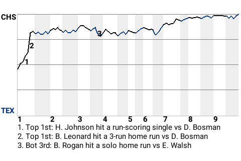 Leonard made an early impact for Chicago when he stroked his 11th home run of the season. The 3-run home run, which came in the top of the first, put the White Sox on top, 4-0.