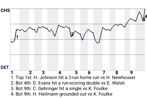 The White Sox got a big at-bat from right fielder Heavy Johnson. For the game, Johnson went 1-4 with a home run. He drove in 2 runs and scored once. In the top of the first, with a runner on 1st, he stroked a 2-run home run. His 17th home run of the season gave Chicago a 2-0 lead.
