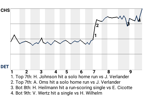 Heavy Johnson came through with a big-time hit for Chicago. The designated hitter smacked a solo home run in the top of the seventh inning to give his team the lead, 1-0. It was his only hit, but it was clutch.