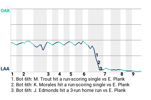 Los Angeles grabbed control in the bottom of the sixth. With one out and runners on 1st and 2nd, Mike Trout delivered a run-scoring single, to make it 1-0, in favor of the Angels.