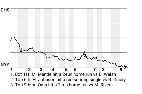 Mickey Mantle hit a 2-run home run off Ed Walsh in the bottom of the first, which put the Yankees ahead, 2-0. In addition to the homer, Mantle had 1 double, while going 2 for 4.
