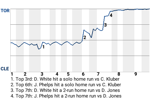 Phelps had a game-changing home run in the top of the sixth. On a 2-0 fastball from Corey Kluber, he banged a solo home run to right, giving the Blue Jays a 2-1 lead. It was the 2nd home run of the year for Phelps.
