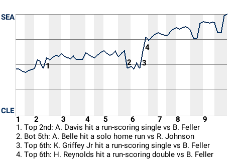 Cleveland could barely put a dent in Johnson. The left-hander tossed 103 pitches over 7 innings for the Mariners, allowing only 3 hits.