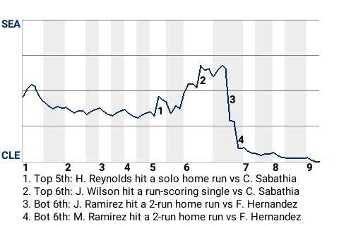 In the bottom of the sixth, Cleveland second baseman Jose Ramirez gave his team the lead. With two out and a runner on 1st, Enriquito hit his 14th home run of the year. Seattle pitcher Felix Hernandez surrendered it. With that, the Indians jumped in front, 3-2.