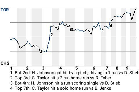 Early in the game, Taylor had a 2-run home run for Toronto. It was his 4th home run of the season and put the Blue Jays on top, 4-2.