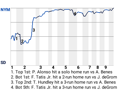 3 (3, 1st Inning off J. deGrom, 1 on, 1 out; 5th Inning off J. deGrom, 2 on, 1 out; 7th Inning off D. Cone, 0 on, 1 out)
