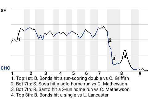 Getting offensive support from Ron Santo, the Chicago Cubs topped the San Francisco Giants, 5-2. Santo went 2 for 2 with a home run, while adding 3 RBI and scoring once for the Cubs. Chicago reliever Les Lancaster snagged the win, upping his record to 1-0. Christy Mathewson shouldered the loss. Sean Marshall earned the save for Chicago, his 1st of the year.