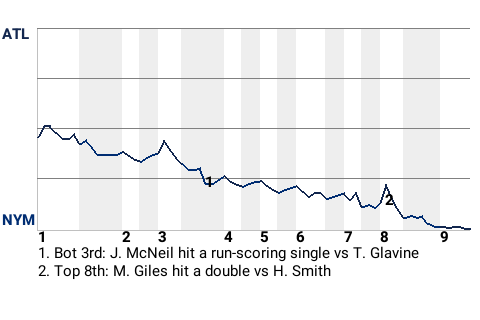 Smith, now 2-1, scattered 6 hits over 8 innings for the Mets.