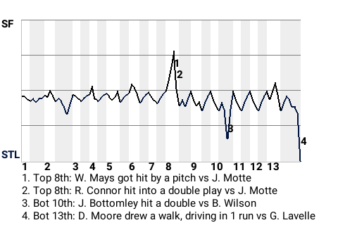 The San Francisco Giants wasted an impressive 9-inning effort from starter Christy Mathewson, falling, 1-0, to the St. Louis Cardinals in 13 innings at Busch Stadium. Ryan Franklin picked up the win in relief. Sergio Romo took the loss for San Francisco. With the loss, San Francisco is 5-4.