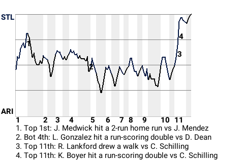 (1, 11th Inning off C. Schilling, 2 on, 0 outs)