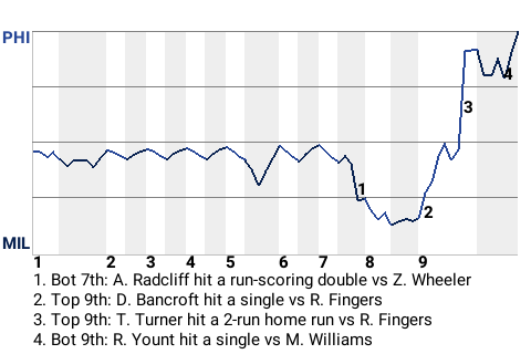 The Philadelphia Phillies took Milwaukee pitcher Mike Caldwell's best shot and still were able to claim a win at Miller Park. The final score had Philadelphia getting past the Brewers, 3-1. Caldwell went 8 innings and allowed no runs, striking out 4. Mitch Williams picked up the save, his 3rd. With the loss, Milwaukee is 3-7.