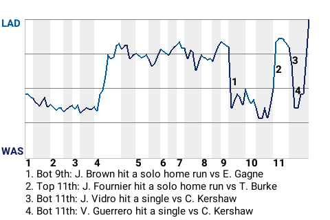 a - J. Fournier pinch hit for P. Guerrero in the 11th