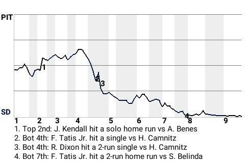 An inflection point occurred with one out in the bottom of the fourth. That's when Padres right fielder Rap Dixon hit a changeup from Howie Camnitz for a 2-run single. Just like that, San Diego was up, 2-1.