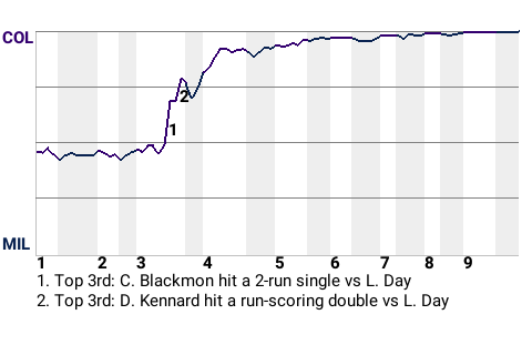 It could have been a different outcome for Colorado, had it not been for Charlie Blackmon, the 30-year old center fielder . Blackmon contributed a 2-run single in the top of the third inning to put Colorado up, 2-0.