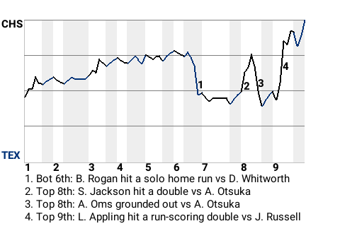 3 (11, 3rd Inning off B. Rogan, 1 on, 1 out; 8th Inning off A. Otsuka, 0 on, 0 outs; 9th Inning off J. Russell, 1 on, 2 outs)