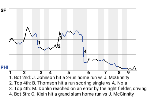 The Phillies got a big at-bat from center fielder Chuck Klein. For the game, Klein was 1-4 with a home run, while adding 4 RBI and scoring once. In the bottom of the fifth, with the bases loaded, he stroked a grand slam home run. His 5th home run of the season gave Philadelphia a 6-3 lead.