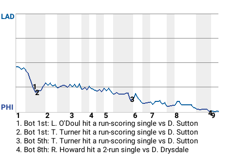 The outcome was still in doubt with two out in the top of the third inning, but Alexander was able to pitch out of a jam. With runners on 2nd and 3rd and Los Angeles trailing 2-0, Alexander retired Roy Campanella, who lined out.