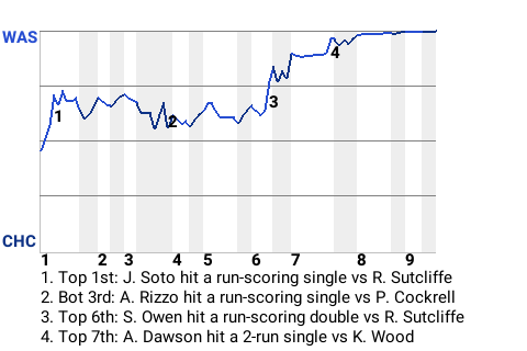The Washington Nationals picked up a win at Wrigley Field, defeating the Chicago Cubs, 8-1. Starting pitcher Phil Cockrell was an essential part of his team's success. The second-place Nationals now have a win-loss record of 27-17.