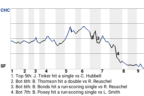 San Francisco starter Carl Hubbell put the Chicago offense in a vise grip. The left-hander relied heavily on his fastball in leading the Giants to a 3-1 win. San Francisco's record now stands at 25-22, placing them third in the National League Western Division.