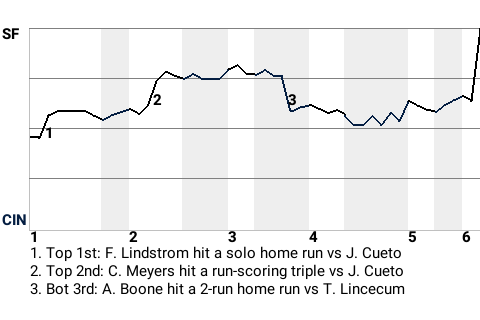 Ballpark: Great American Ball Park Weather: Rain (64 degrees), wind blowing out to center at 10 mph Start Time: 7:05 PM ET Time: 2:18 Attendance: 30551 Special Notes: The game was called in the 6th inning due to bad weather. |