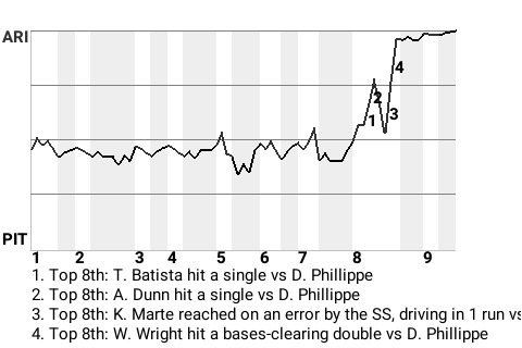 Arizona used the timely hitting of Wild Bill Wright to capture the win. The right fielder stroked a bases-clearing double in the top of the eighth inning to put the Diamondbacks on top, 4-0. It was his only hit in 3 at-bats, but he made it count.