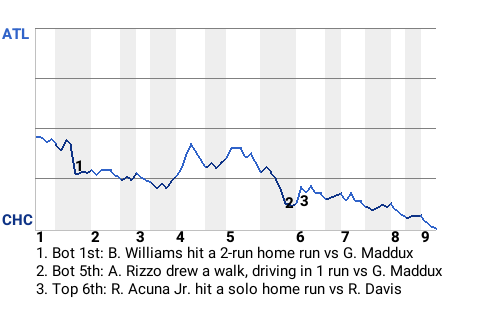The Cubs are now 29-40, while the Braves fall to 29-37.