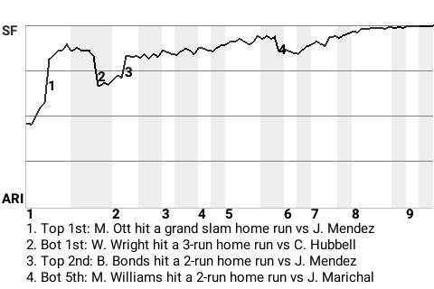 (10, 1st Inning off C. Hubbell, 2 on, 1 out)