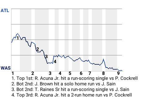 Atlanta had a runner on 1st in the top of the eighth. With one out, Ronald Acuna Jr. stood at the plate, hoping to find a gap. Instead, he hit into a double play. The score remained 5-3, Washington. The Braves never could mount a comeback.