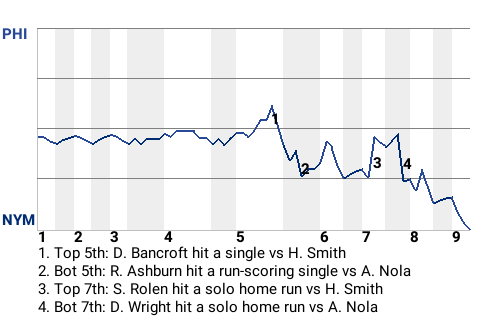 New York went up, 2-1, on David Wright's 7th home run of the season. The solo home run, which Wright hit in the bottom of the seventh, left Philadelphia pitcher Aaron Nola shaking his head.