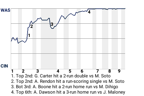 2 (10, 2nd Inning off M. Soto, 2 on, 2 outs; 5th Inning off J. Maloney, 1 on, 2 outs)