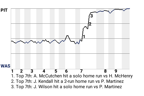 Pittsburgh went in front, 1-0, on Andrew McCutchen's 6th home run of the season. The solo home run, which McCutchen hit in the top of the seventh, left Washington pitcher Henry McHenry visibly perturbed.
